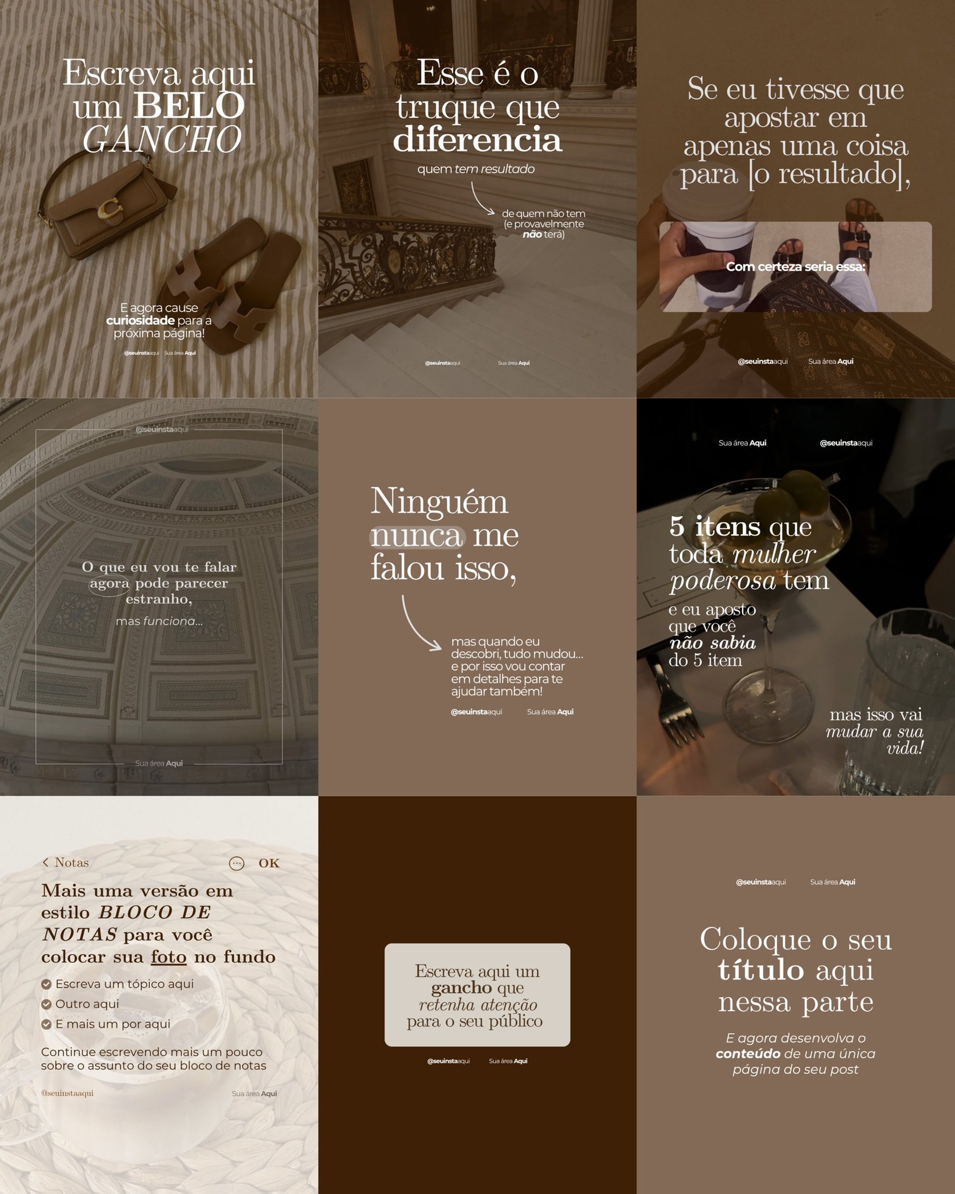 Mais de 100 templates de design editáveis para deixar o seu perfil mais elegante e atrair mais clientes em poucos minutos e poucos cliques: